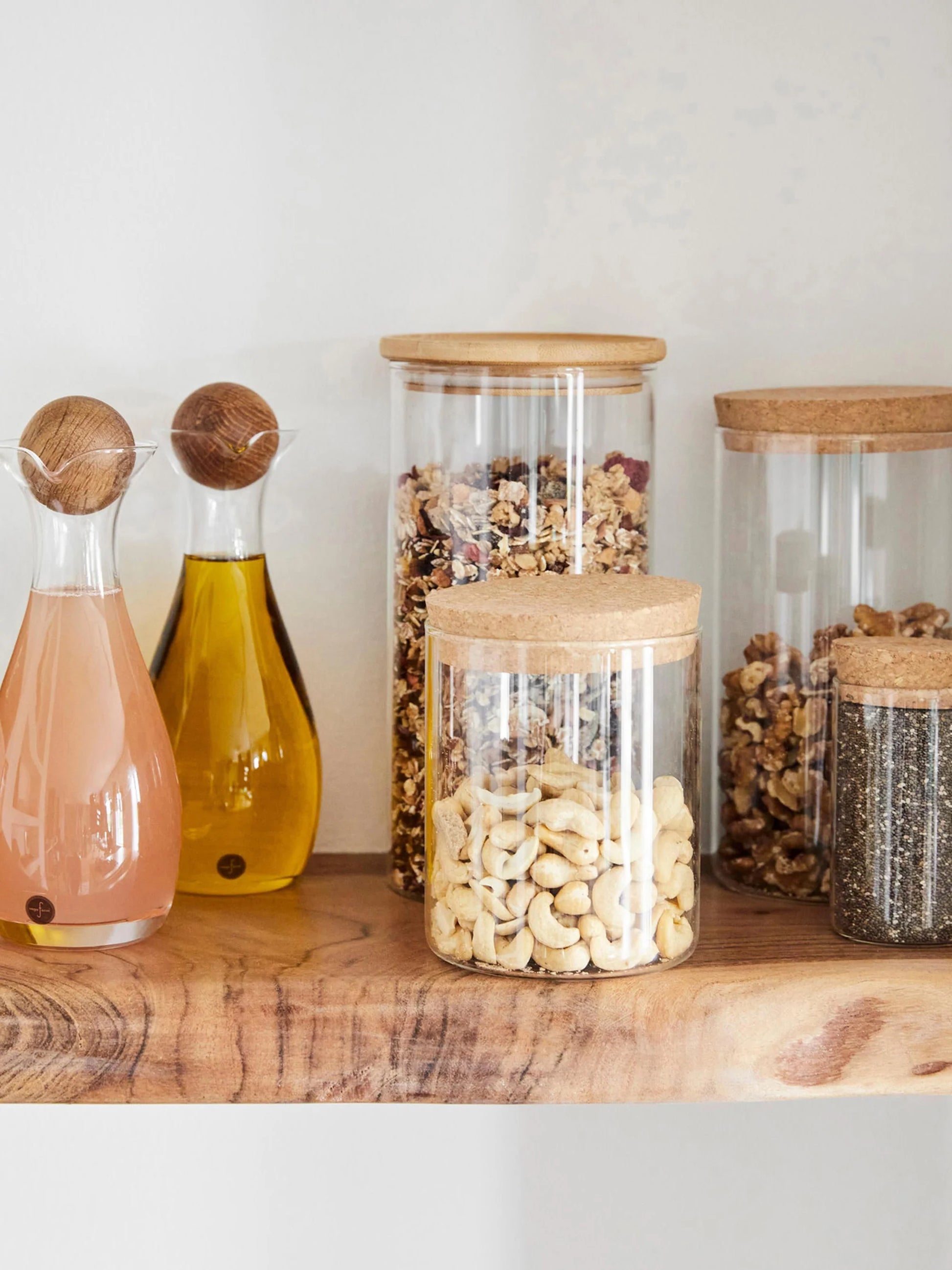 The Signature Wood Stopper: That solid wooden ball isn't just a looker; it keeps your drink fresh and fruit flies out.